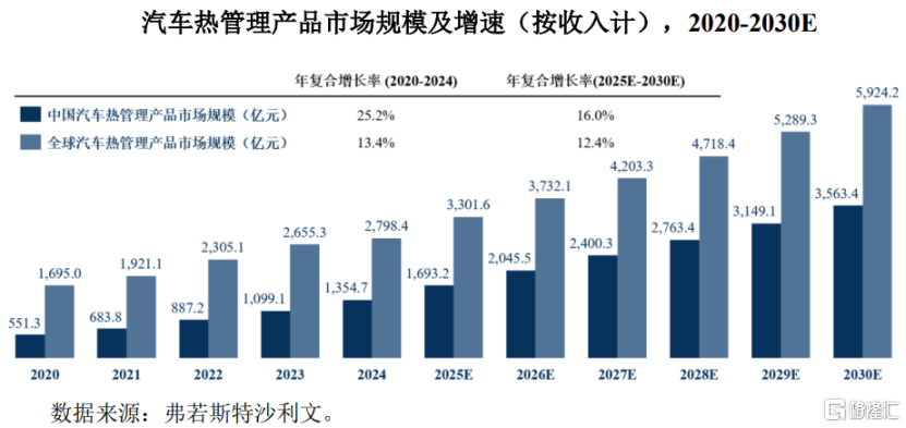 随着新能源汽车渗透率的提升,汽车热管理市场规模也持续扩大。2024年中国汽车热管理市场规模为1354.7亿元,预计到2030年将达到3563.4亿元。